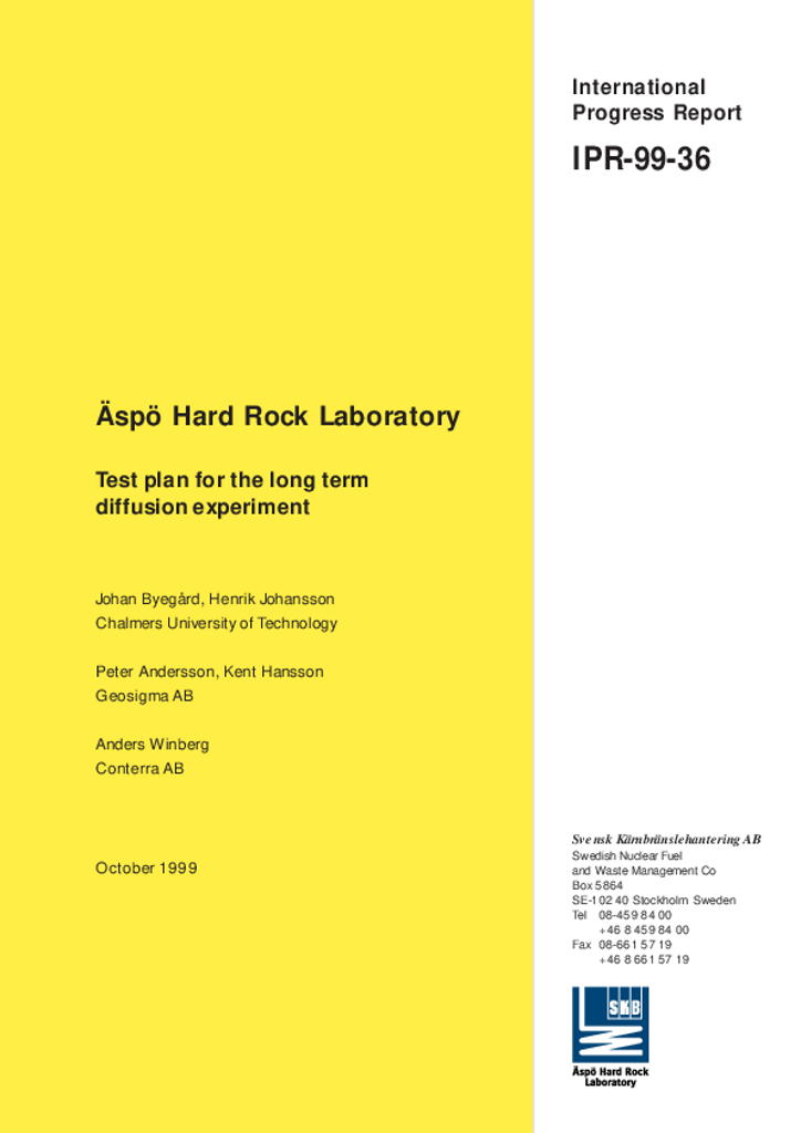Äspö Hard Rock Laboratory. Test plan for the long term diffusion experiment