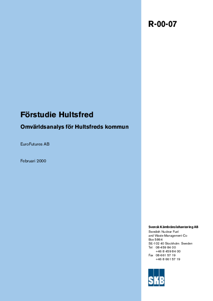 Förstudie Hultsfred. Omvärldsanalys för Hultsfreds kommun