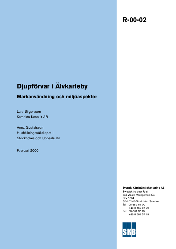 Djupförvar i Älvkarleby. Markanvändning och miljöaspekter