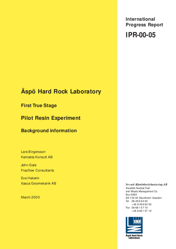 Äspö Hard Rock Laboratory. First True Stage. Pilot Resin Experiment. Background information