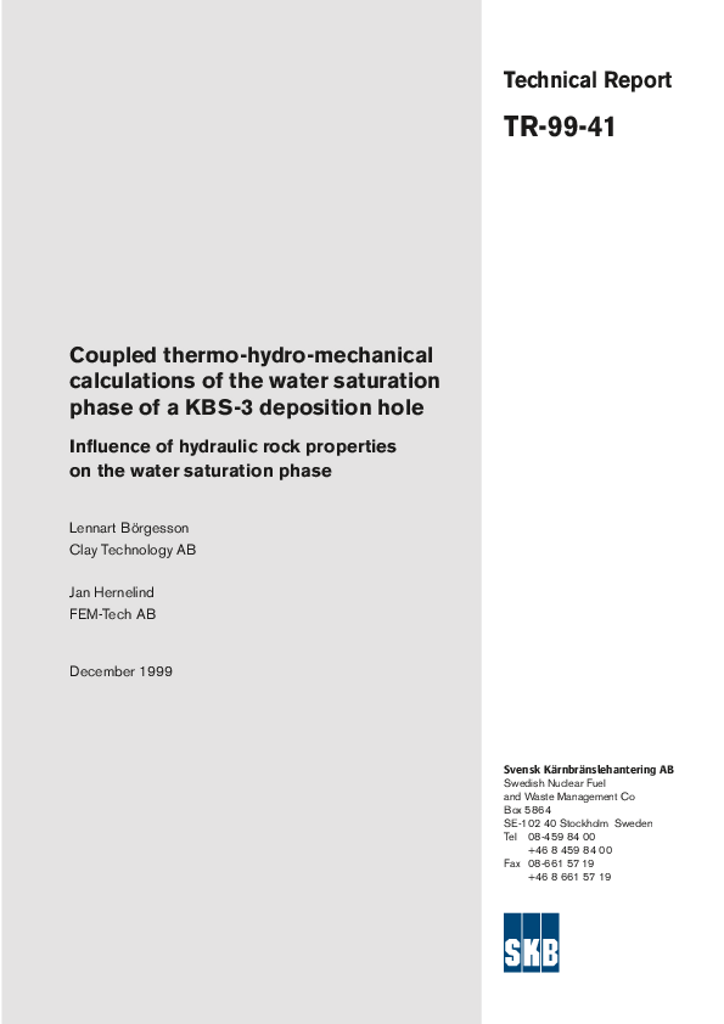 Coupled thermo-hydro-mechanical calculations of the water saturation phase of a KBS-3 deposition hole. Influence of hydraulic rock properties on the water saturation phase