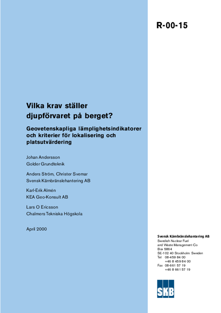 Vilka krav ställer djupförvaret på berget? Geovetenskapliga lämplighetsindikatorer och kriterier för lokalisering och platsutvärdering