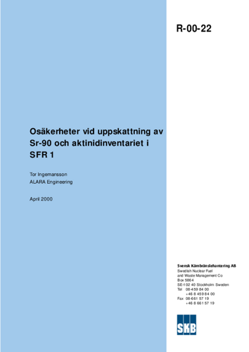 Osäkerheter vid uppskattning av Sr-90 och aktinidinventariet i SFR 1