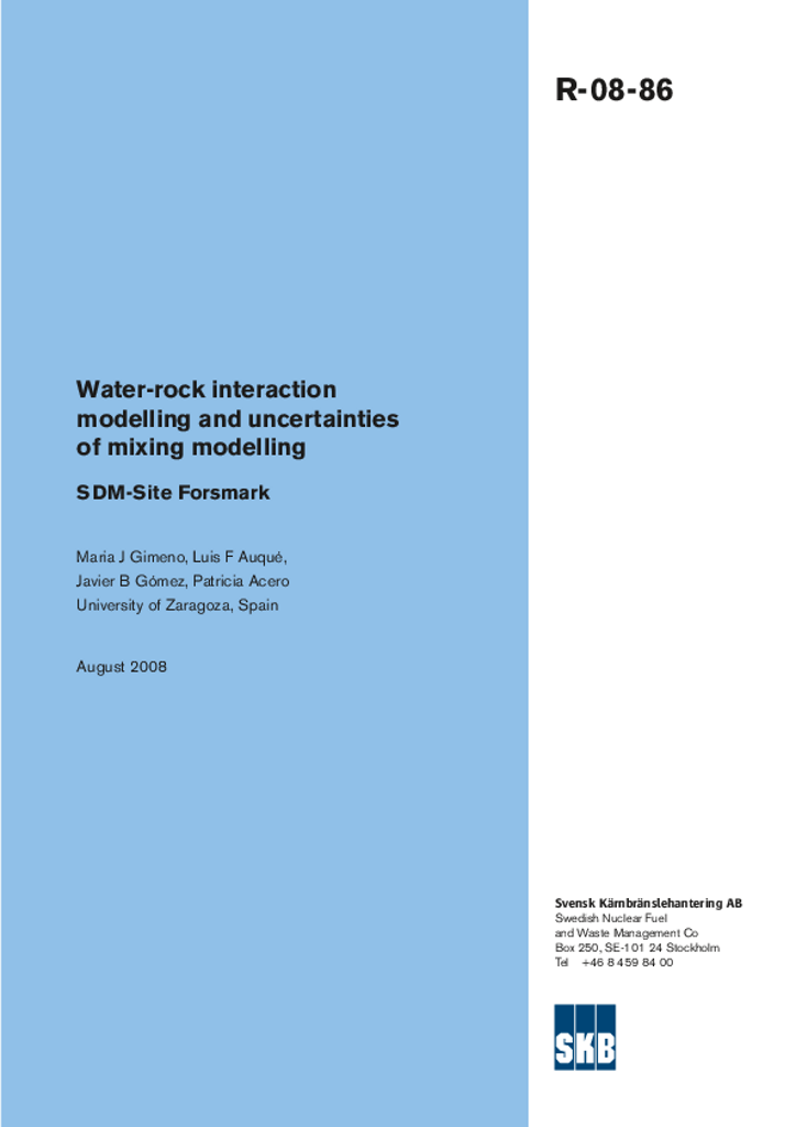 Water-rock interaction modelling and uncertainties of mixing modelling. SDM-Site Forsmark