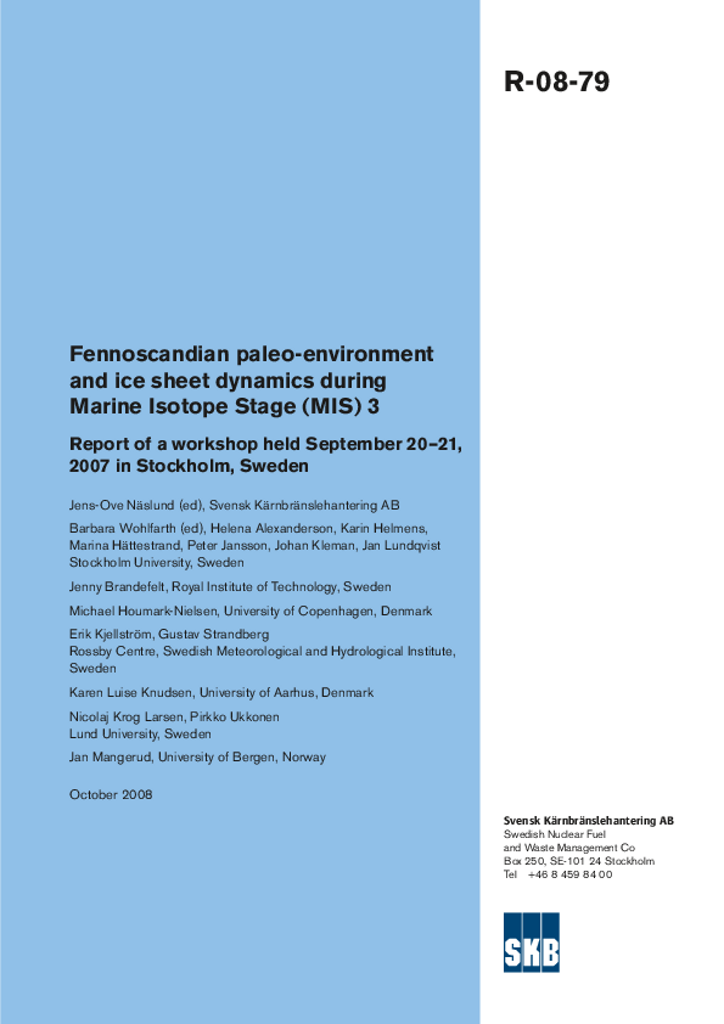 Fennoscandian paleo-environment and ice sheet dynamics during Marine Isotope Stage (MIS) 3. Report of workshop held September 20-21, 2007 in Stockholm, Sweden
