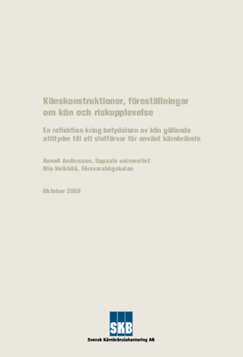 Samhällsforskning 2008. Betydelsen för människorna, hembygden och regionen av ett slutförvar för använt kärnbränsle Bilaga - Könskonstruktioner, föreställningar om kön och riskupplevelse
