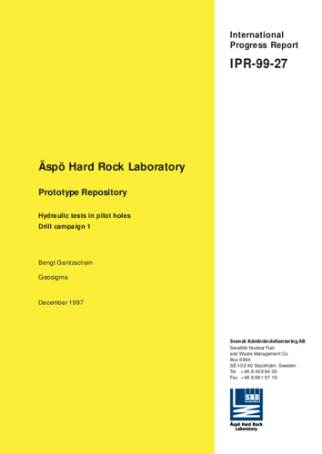 Äspö Hard Rock Laboratory. Prototype Repository. Hydraulic tests in pilot holes. Drill campaign 1