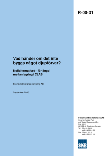 Vad händer om det inte byggs något djupförvar? Nollalternativet - förlängd mellanlagring i CLAB