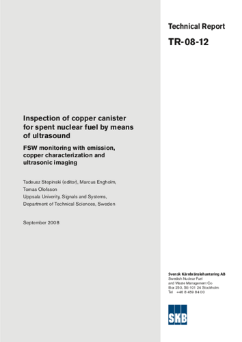 Inspection of copper canister for spent nuclear fuel by means of ultrasound. FSW monitoring with emission, copper characterization and ultrasonic imaging