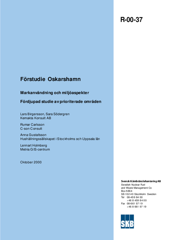 Förstudie Oskarshamn. Markanvändning och miljöaspekter. Fördjupad studie av prioriterade områden