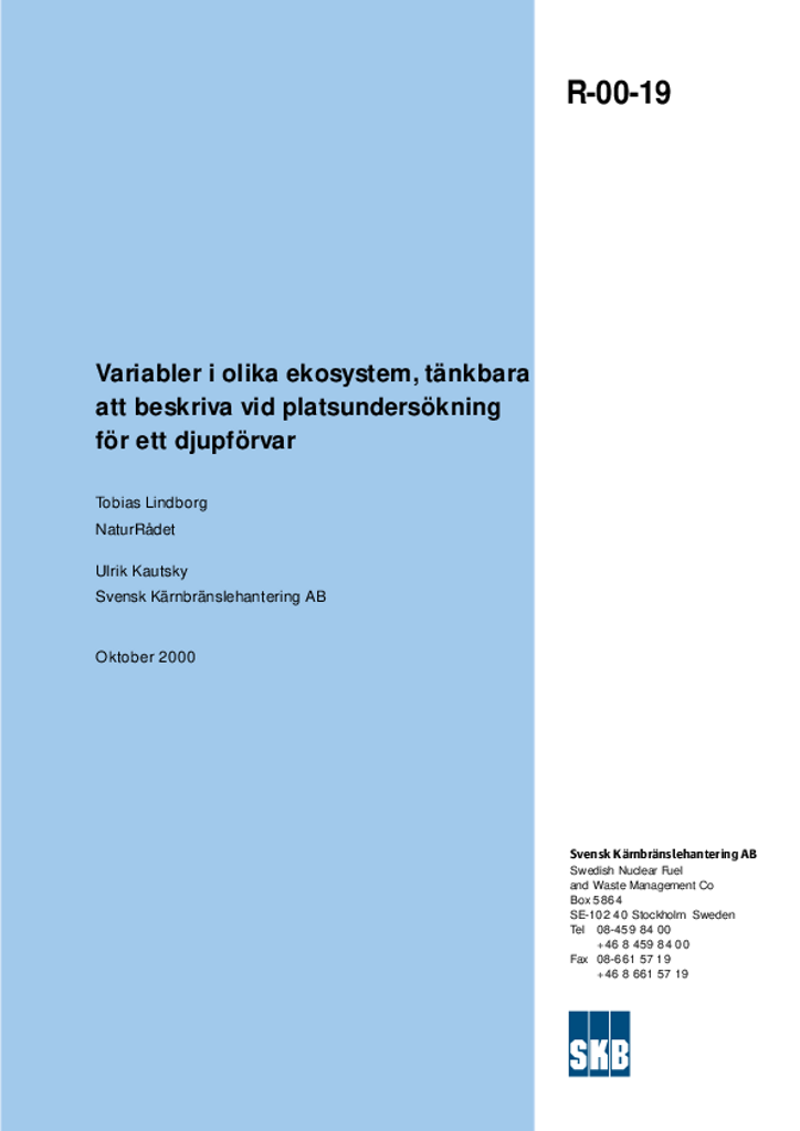 Variabler i olika ekosystem, tänkbara att beskriva vid platsundersökning för ett djupförvar