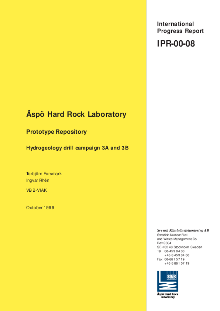 Äspö Hard Rock Laboratory. Prototype Repository. Hydrogeology drill campaign 3A and 3B