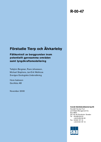Förstudie Tierp och Älvkarleby. Fältkontroll av berggrunden inom potentiellt gynnsamma områden samt tyngdkraftsmodellering
