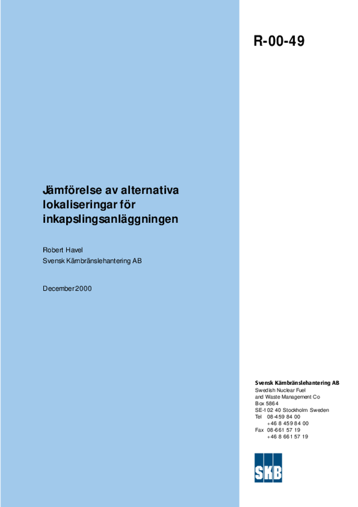 Jämförelse av alternativa lokaliseringar för inkapslingsanläggningen