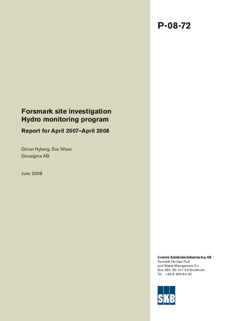Forsmark site investigation. Hydro monitoring program. Report for April 2007 - April 2008
