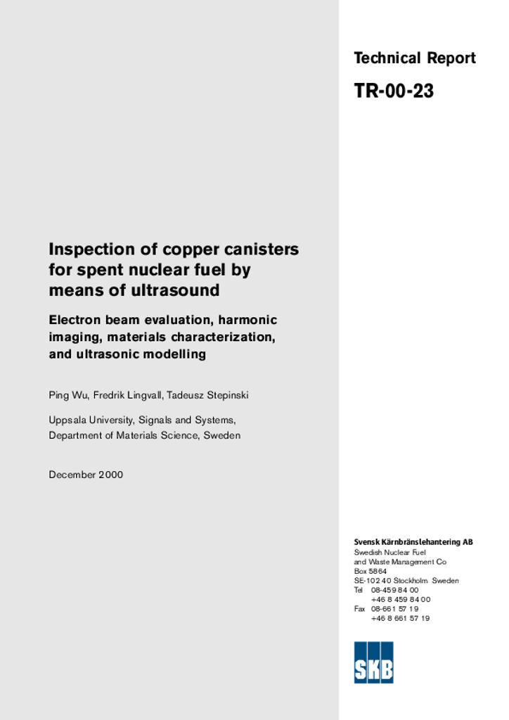 Inspection of copper canisters for spent nuclear fuel by means of ultrasound. Electron beam evaluation, harmonic imaging, materials characterization, and ultrasonic modelling