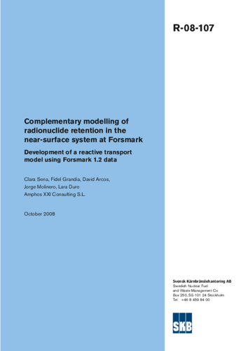 Complementary modelling of radionuclide retention in the near-surface system at Forsmark. Development of a reactive transport model using Forsmark 1.2 data