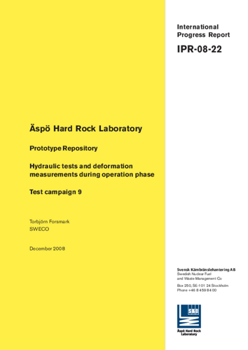 Äspö Hard Rock Laboratory. Prototype Repository. Hydraulic tests and deformation measurements during operation phase. Test campaign 9