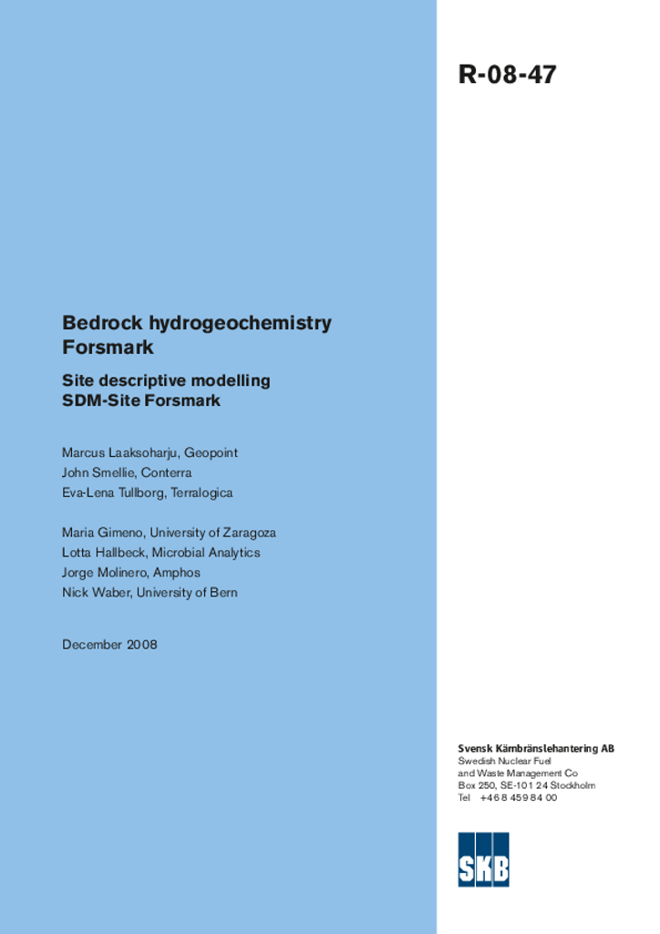 Laaksoharju, Marcus; Smellie, John; Tullborg, Eva-Lena Gimeno, Maria; Hallbeck, Lotta; Molinero, Jorge; Waber, Nick