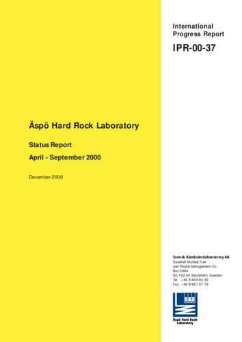 Äspö Hard Rock Laboratory. Status report April - September 2000