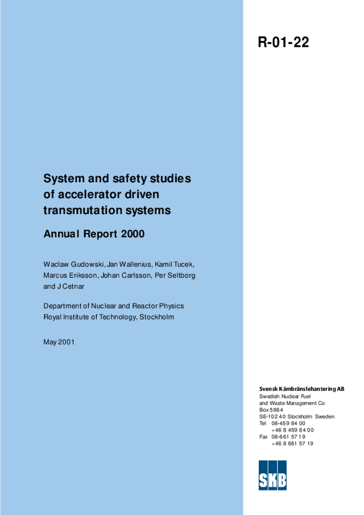 Gudowski, Waclaw; Wallenius, Jan; Tucek, Kamil; Eriksson, Marcus; Carlsson, Johan; Seltborg, Per; Cetnar, J