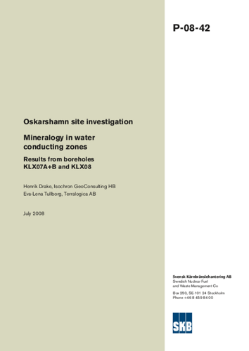 Oskarshamn site investigation. Mineralogy in water conducting zones. Results from boreholes KLX07A+B and KLX08