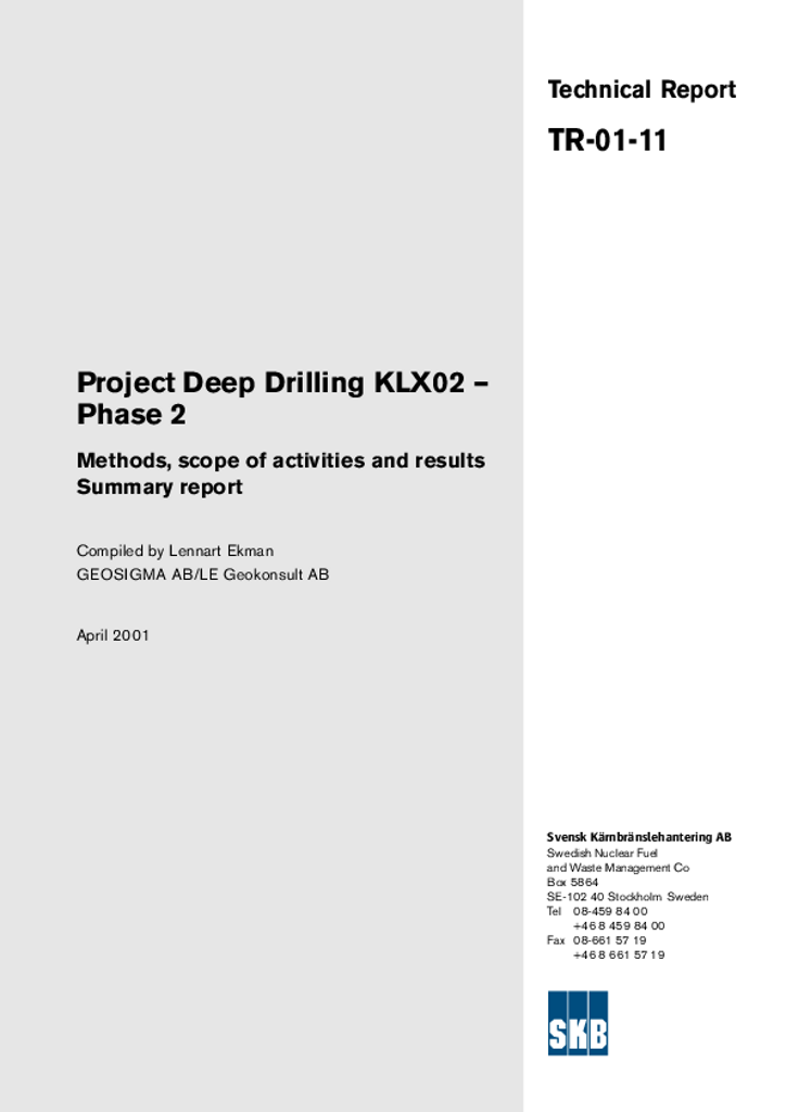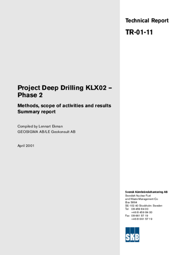 Project Deep Drilling KLX02-Phase 2. Methods, scope of activities and results. Summary