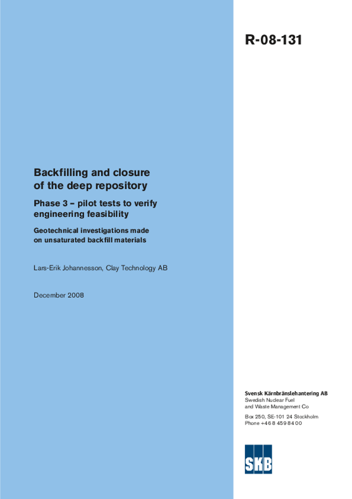 Backfilling and closure of the deep repository. Phase 3 - pilot tests to verify engineering feasibility. Geotechnical investigations made on unsaturated backfill materials