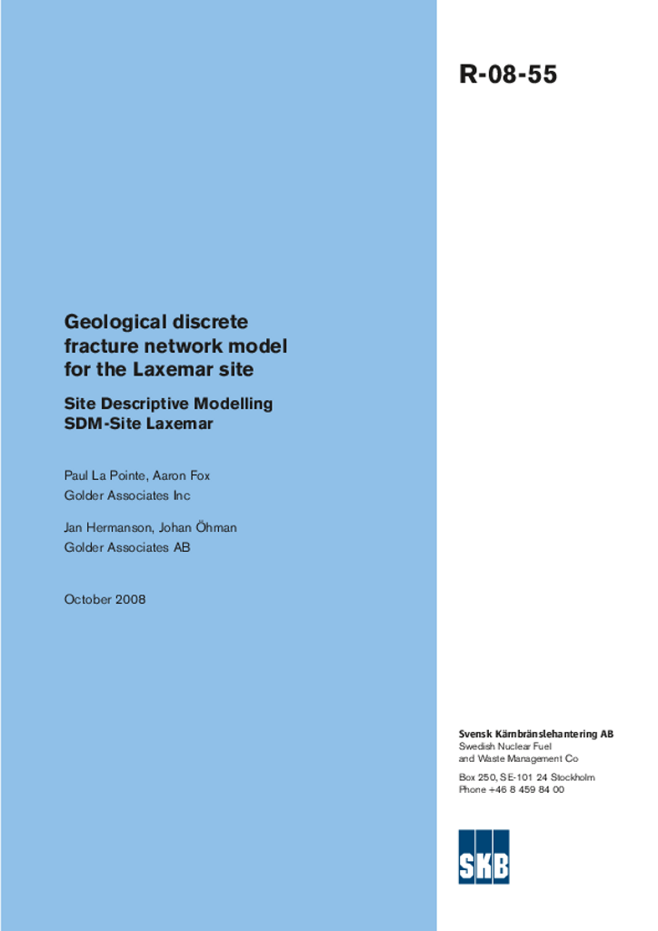 Geological discrete fracture network model for the Laxemar site. Site Descriptive Modelling SDM-Site Laxemar