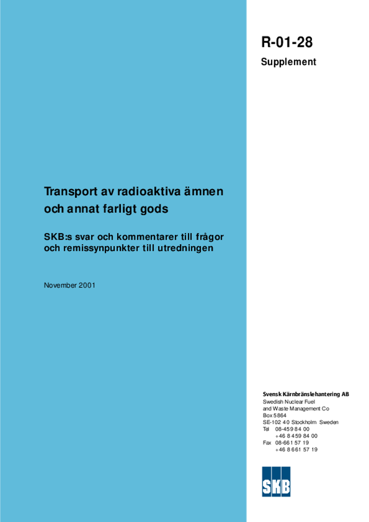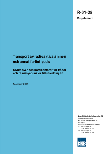 Transport av radioaktiva ämnen och annat farligt gods. SKB:s svar och kommentarer till frågor och remissynpunkter till utredningen