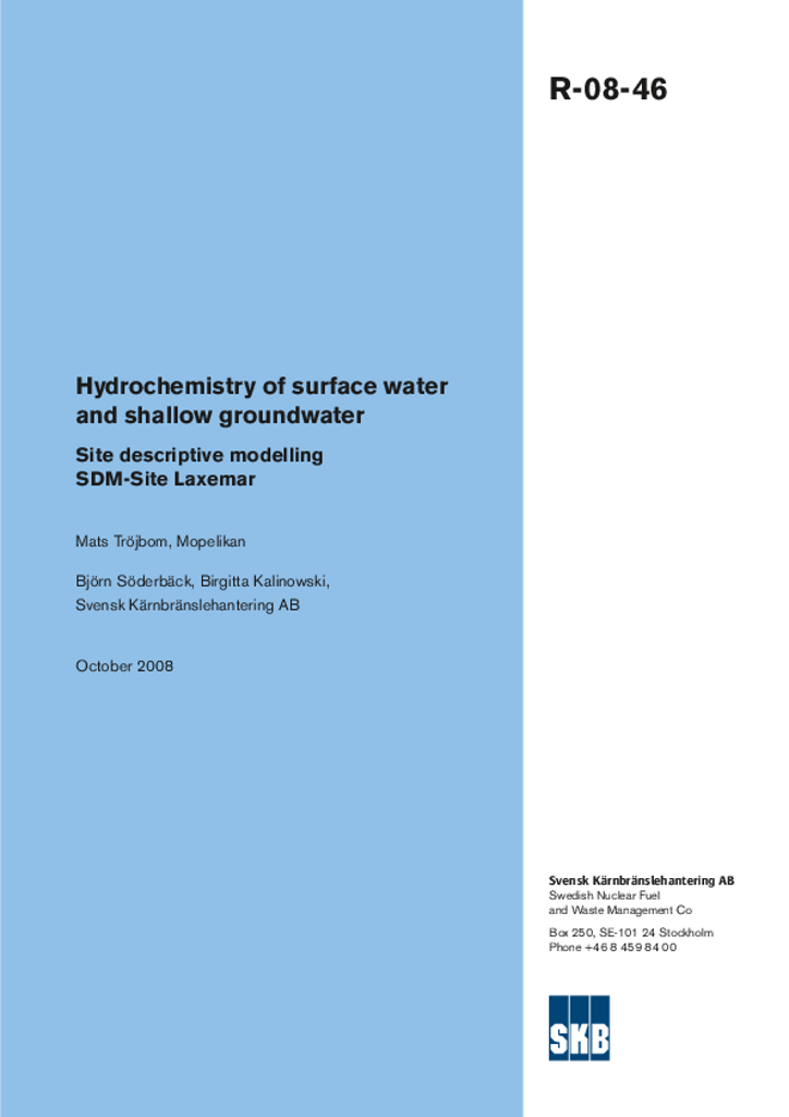 Hydrochemistry of surface water and shallow groundwater. Site descriptive modelling SDM-Site Laxemar