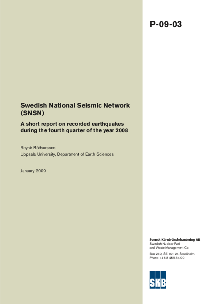 Swedish National Seismic Network (SNSN). A short report on recorded earthquakes during the fourth quarter of the year 2008