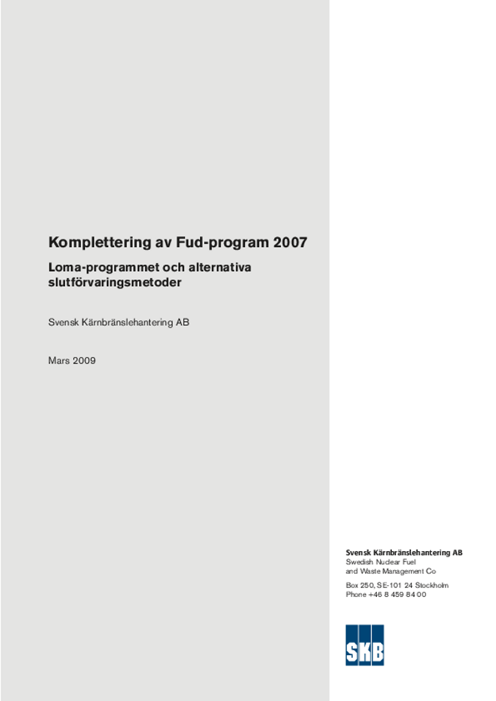 Komplettering av Fud-program 2007. Loma-programmet och alternativa slutförvaringsmetoder [Fud-k]