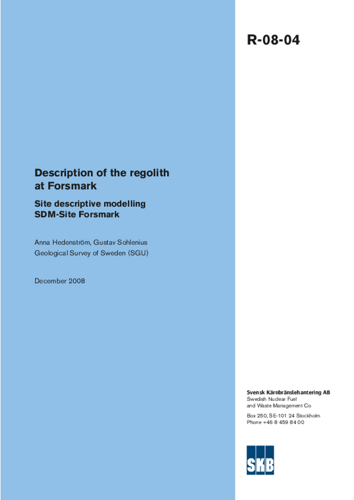 Description of the regolith at Forsmark. Site descriptive modelling SDM-Site Forsmark
