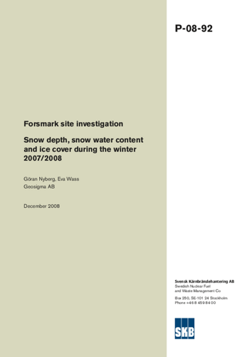 Forsmark site investigation. Snow depth, snow water content and ice cover during the winter 2007/2008