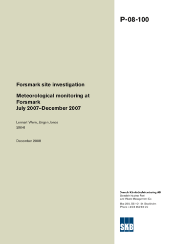 Forsmark site investigation. Meteorological monitoring at Forsmark July 2007-December 2007