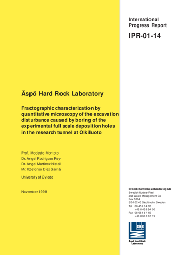 Äspö Hard Rock Laboratory. Fractographic characterization by quantitative microscopy of the excavation disturbance caused by boring of the experimental full scale deposition holes in the research tunnel at Olkiluoto