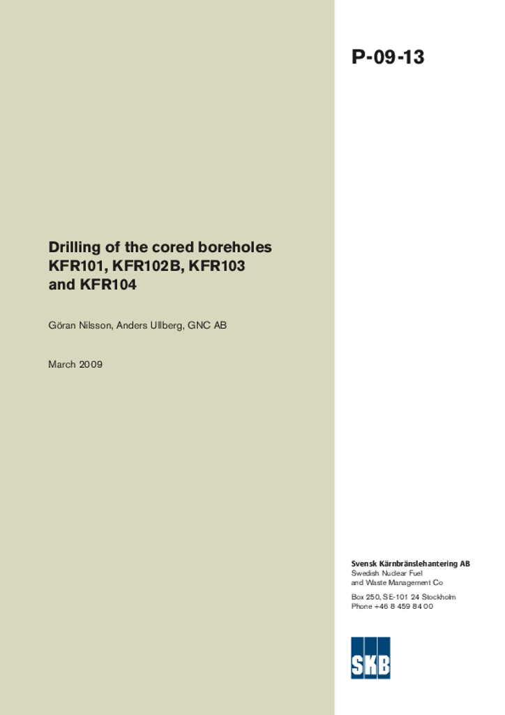 Site investigation SFR. Drilling of the cored boreholes KFR101, KFR102B, KFR103 and KFR104