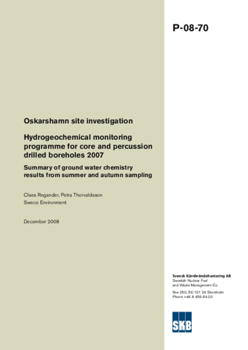 Oskarshamn site investigation. Hydrogeochemical monitoring programme for core and percussion drilled boreholes 2007. Summary of ground water chemistry results from summer and autumn sampling