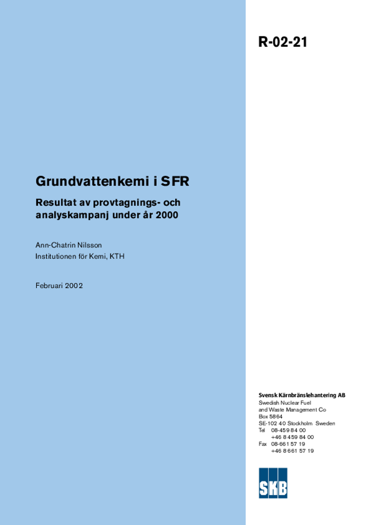 Grundvattenkemi i SFR Resultat av provtagnings- och analyskampanj under år 2000