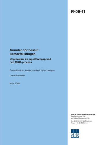 Grunden för beslut i kärnavfallsfrågan. Upplevelser av lagstiftningsgrund och MKB-process