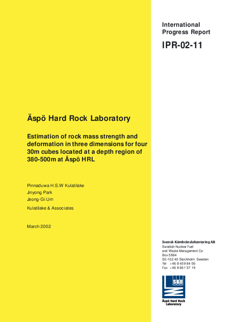 Äspö Hard Rock Laboratory. Estimation of rock mass strength and deformation in three dimensions for four 30m cubes located at a depth region of 380-500m at Äspö HRL