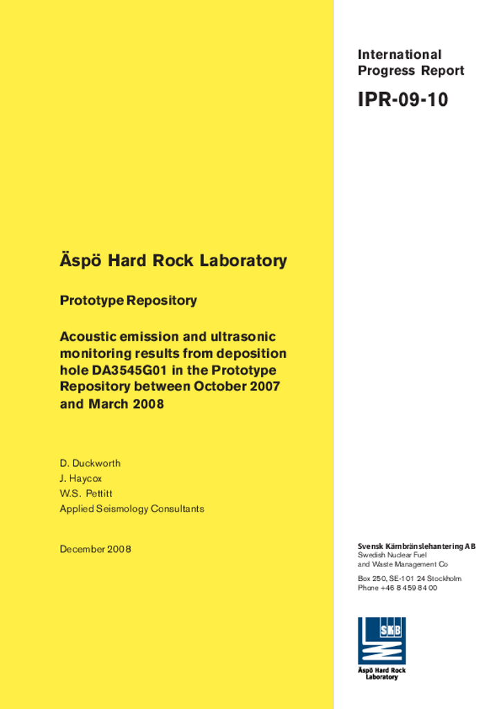 Äspö Hard Rock Laboratory. Prototype Repository. Acoustic emission and ultrasonic monitoring results from deposition hole DA3545G01 in the Prototype Repository between October 2007 and March 2008