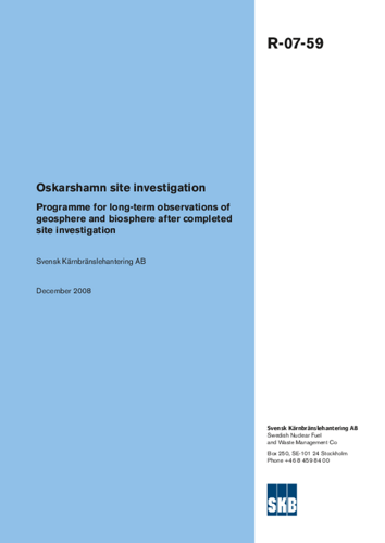 Oskarshamn site investigation. Programme for long-term observations of geosphere and biosphere after completed site investigation