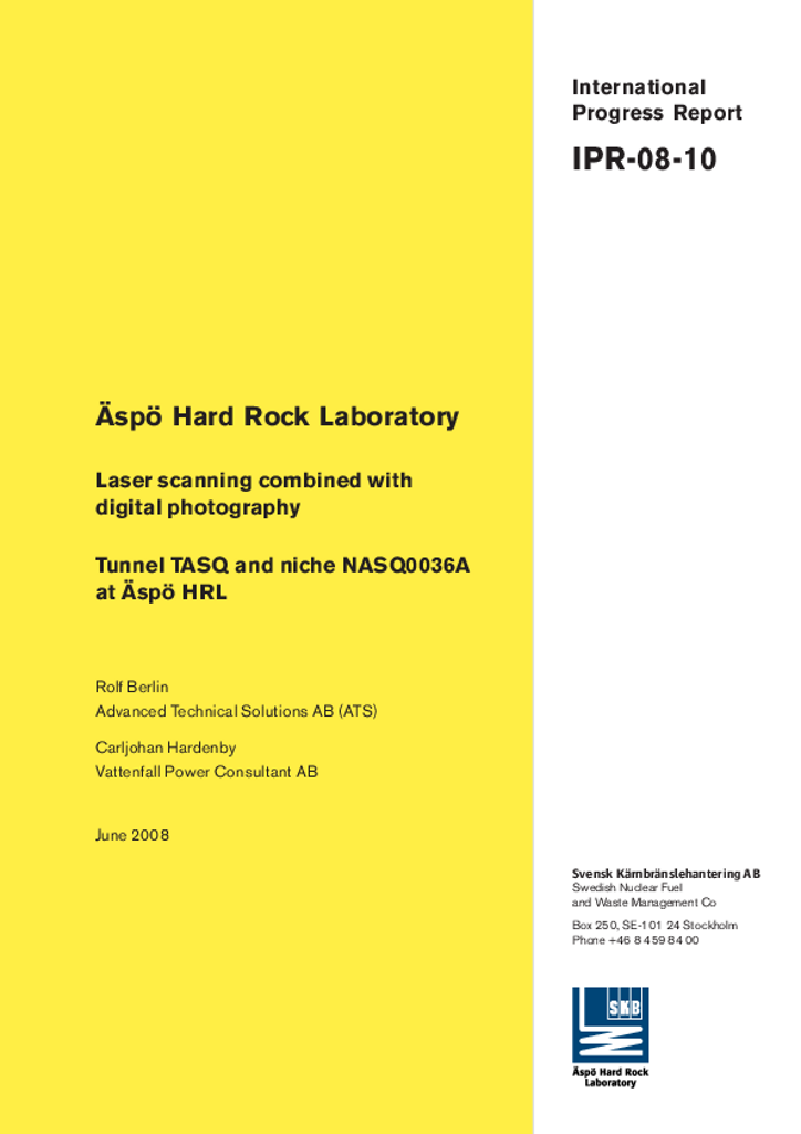 Äspö Hard Rock Laboratory. Laser scanning combined with digital photography. Tunnel TASQ and niche NASQ0036A at Äspö HRL