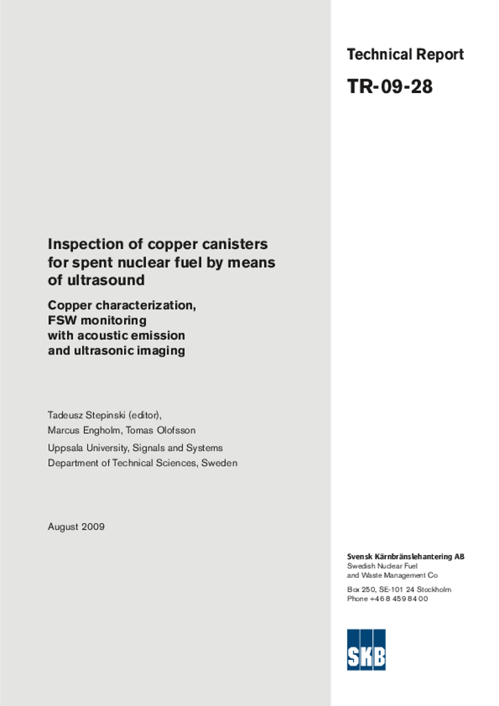 Inspection of copper canisters for spent nuclear fuel by means of ultrasound. Copper characterization, FSW monitoring with acoustic emission and ultrasonic imaging