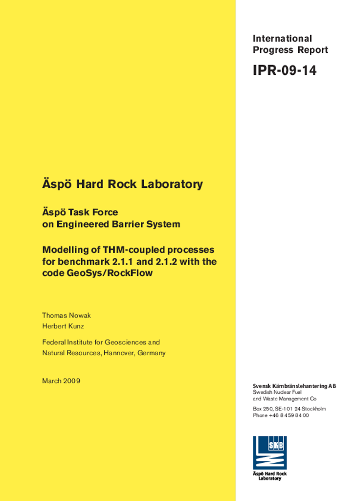 Äspö Hard Rock Laboratory. Äspö Task Force on Engineered Barrier System. Modelling of THM-coupled processes for benchmark 2.1.1 and 2.1.2 with the code GeoSys/RockFlow