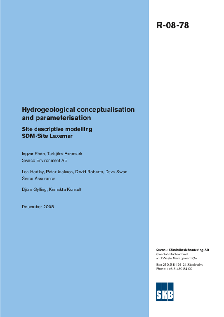 Hydrogeological conceptualisation and parameterisation. Site descriptive modelling SDM-Site Laxemar