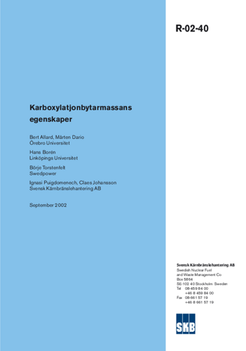 Allard, Bert; Dario, Mårten; Borén, Hans; Torstenfelt, Börje; Puigdomenech, Ignasi; Johansson, Claes