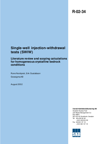 Single-well injection-withdrawal tests (SWIW). Literature review and scoping calculations for homogeneous crystalline bedrock conditions